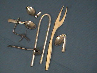 "Spoon Bending": If you have some old silver plate silverware (the sort of stuff used back in the 1940's before stainless steel was around) which you can be ok with "bending", bring it. It is some of the best for easily learning how to spoon bend. But don't worry if you don't have it. Stainless steel will work quite fine. Bring at least 3 regular forks and 3 teaspoons for each person. [ No knives please!] After you bend them, you may feel more ambitious. So you might consider bringing one or two heavier items such as a table spoon and/or a foot and a half length of say 3/8 to 1/2 inch diameter solid aluminum rod (available from your local hardware store). Heavy duty plastic cooking utensils can also be interesting.